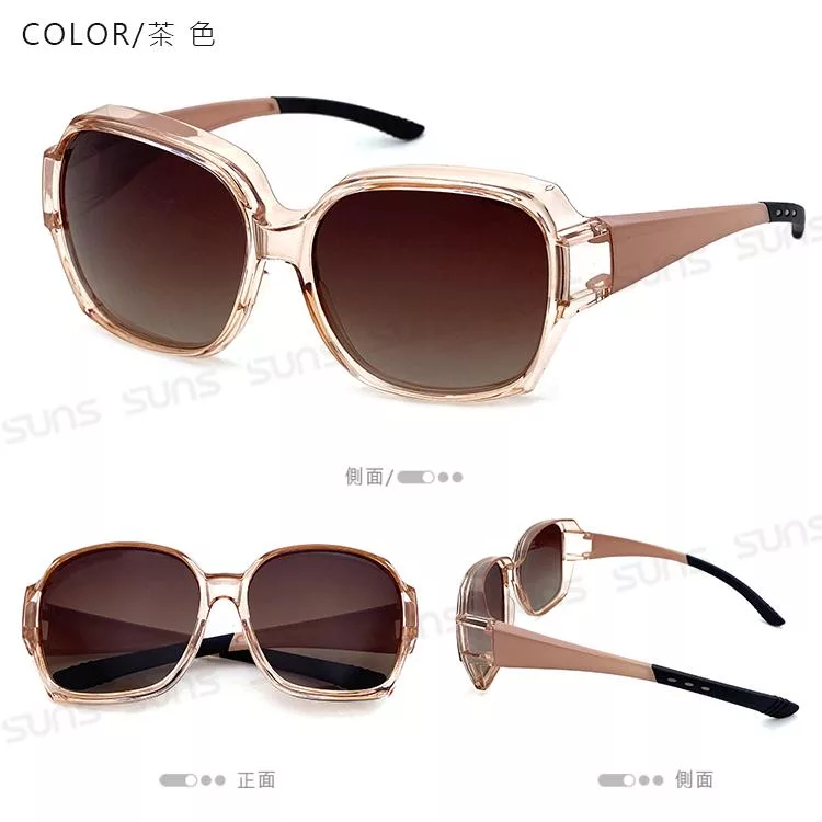 【SUNS】時尚韓版ins大框偏光墨鏡(可套式) 超輕量無感太陽眼鏡 男女適用 防眩光 抗UV400 茶色