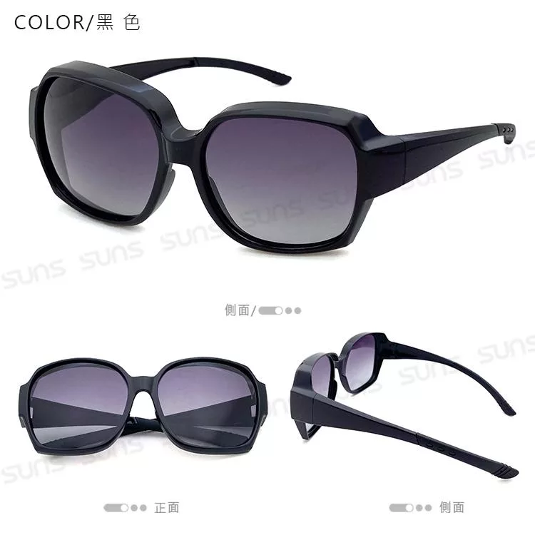【SUNS】外掛全罩式 上翻式偏光墨鏡 方框包覆式眼鏡(可套鏡) 抗UV400 防眩光 黑框黑框