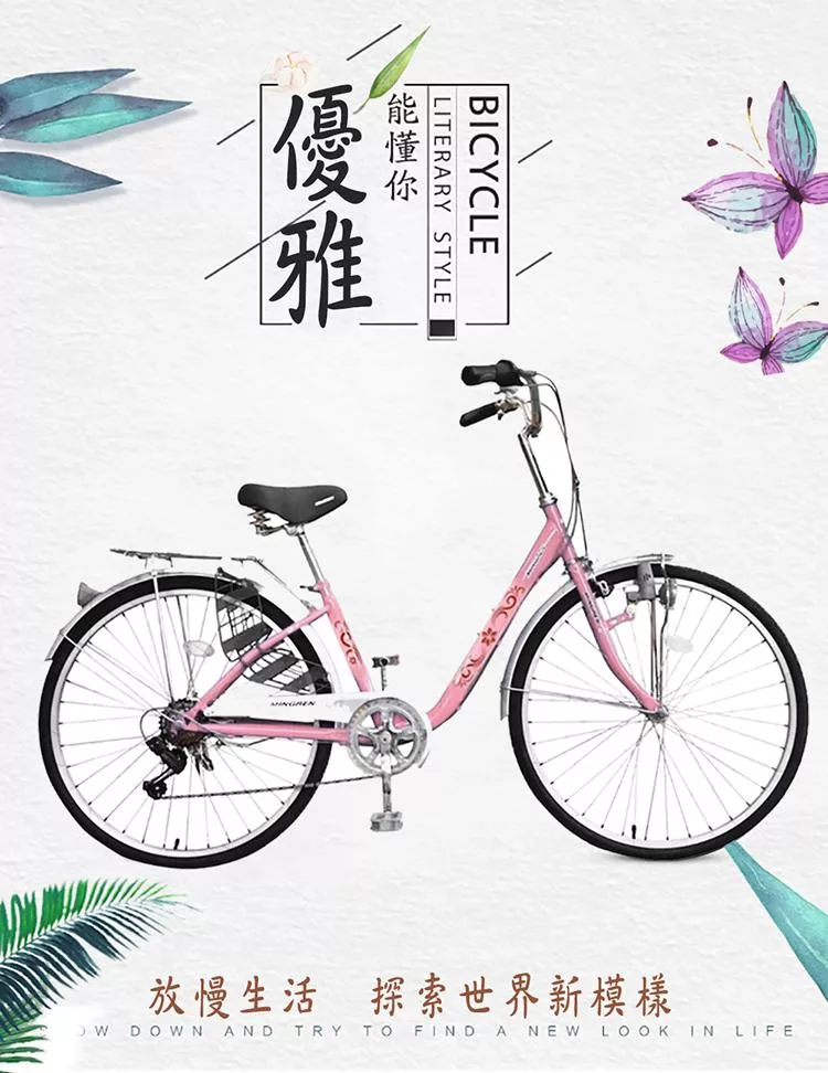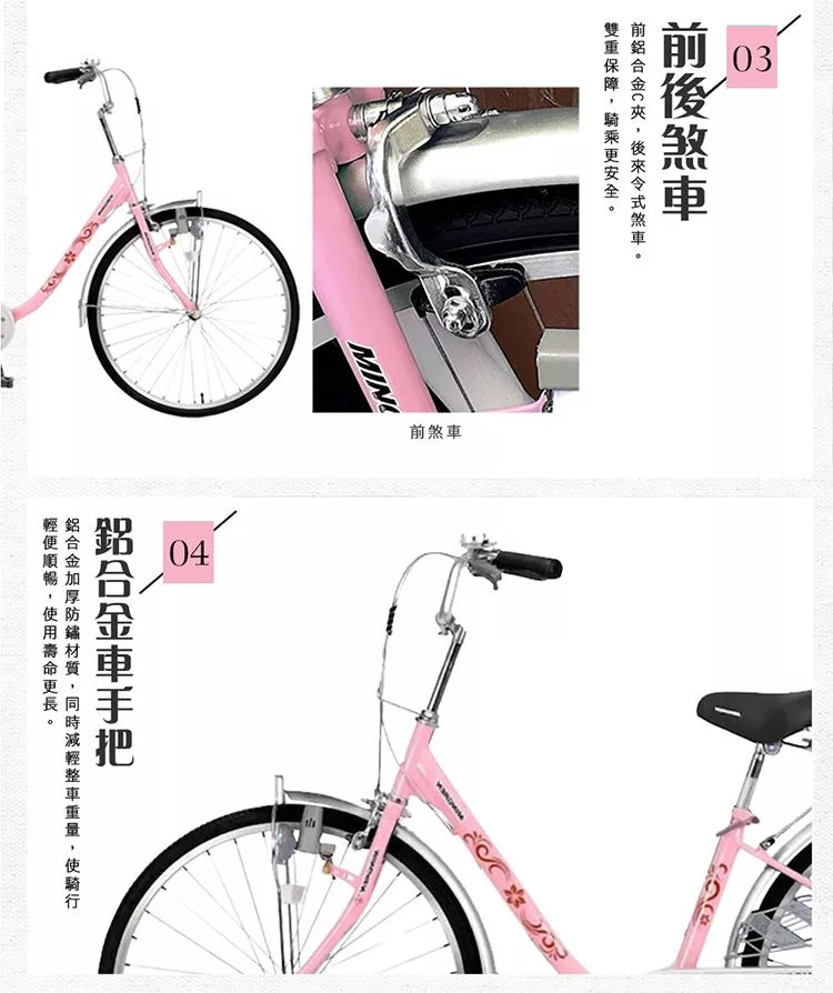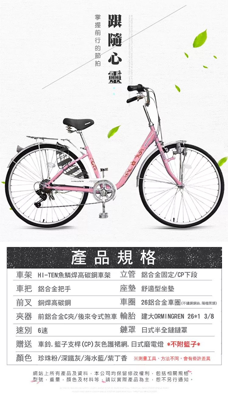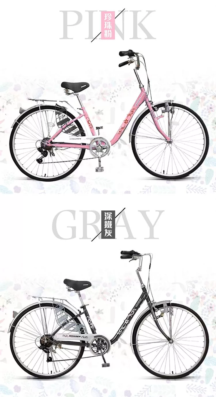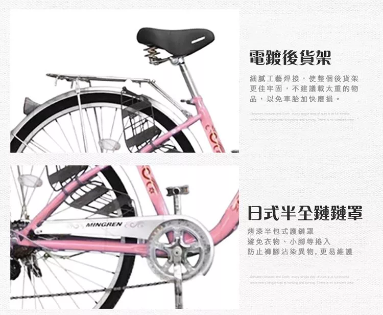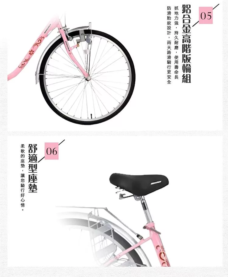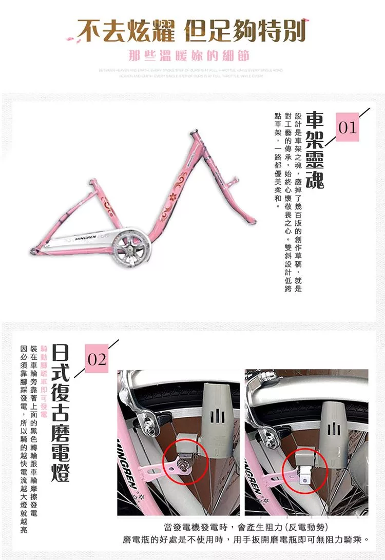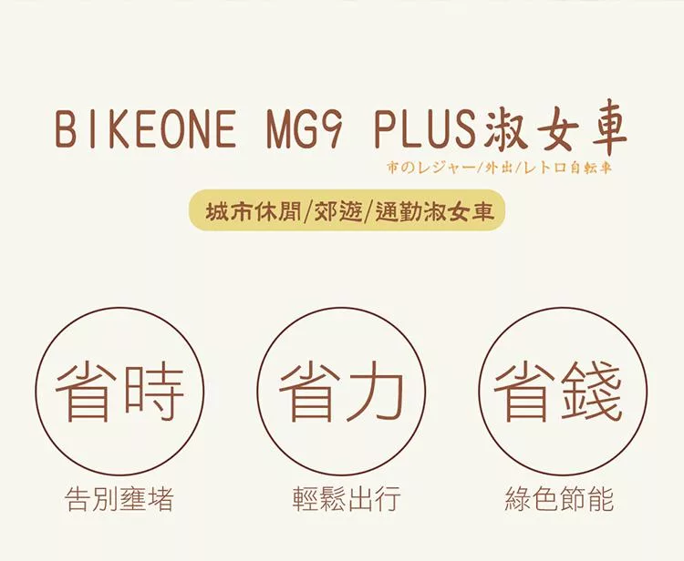 BIKEONE MG9 PLUS 24吋6速日式和風淑女車內置磨電燈低跨點設計復古式美學婆婆媽媽姐妹學生通勤自行車代步首選- 珍珠粉