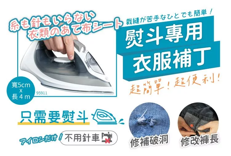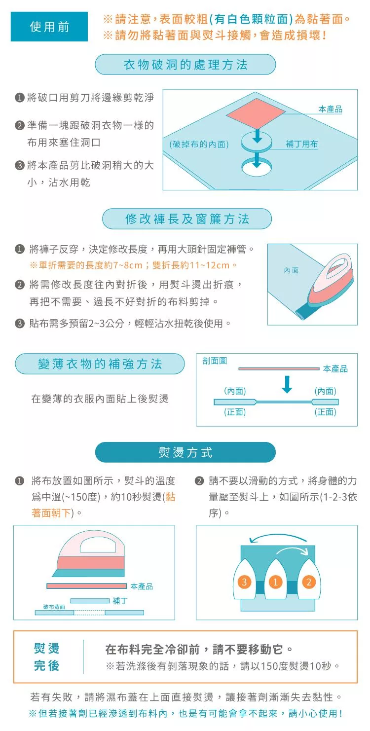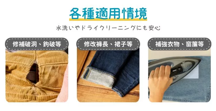 ※本產品為"單面黏著",可替代針車縫線,用來修補破洞、加強布料等※