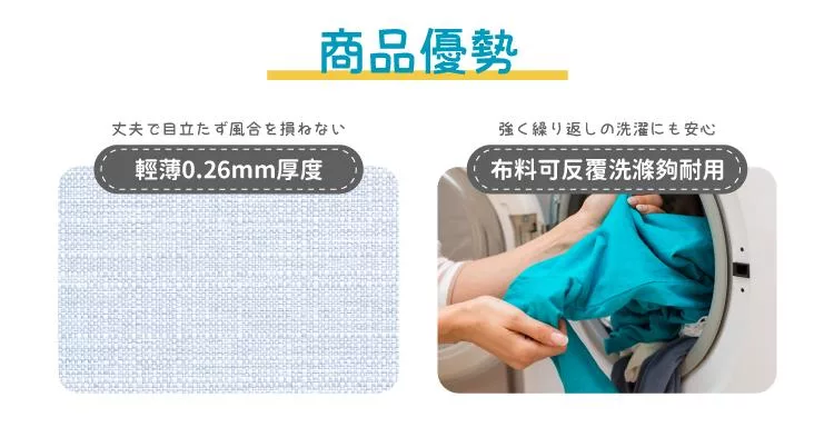 ●厚度僅0.26mm不會讓原來的布料突然增厚顯得突兀。