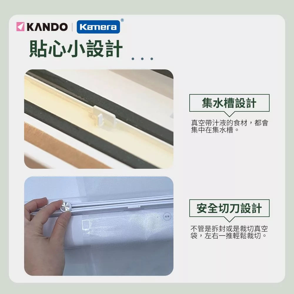 14. 安全切刀設計,可根據內容物大小進行裁切,不管是拆封或是裁切真空袋,左右一推輕鬆裁切。