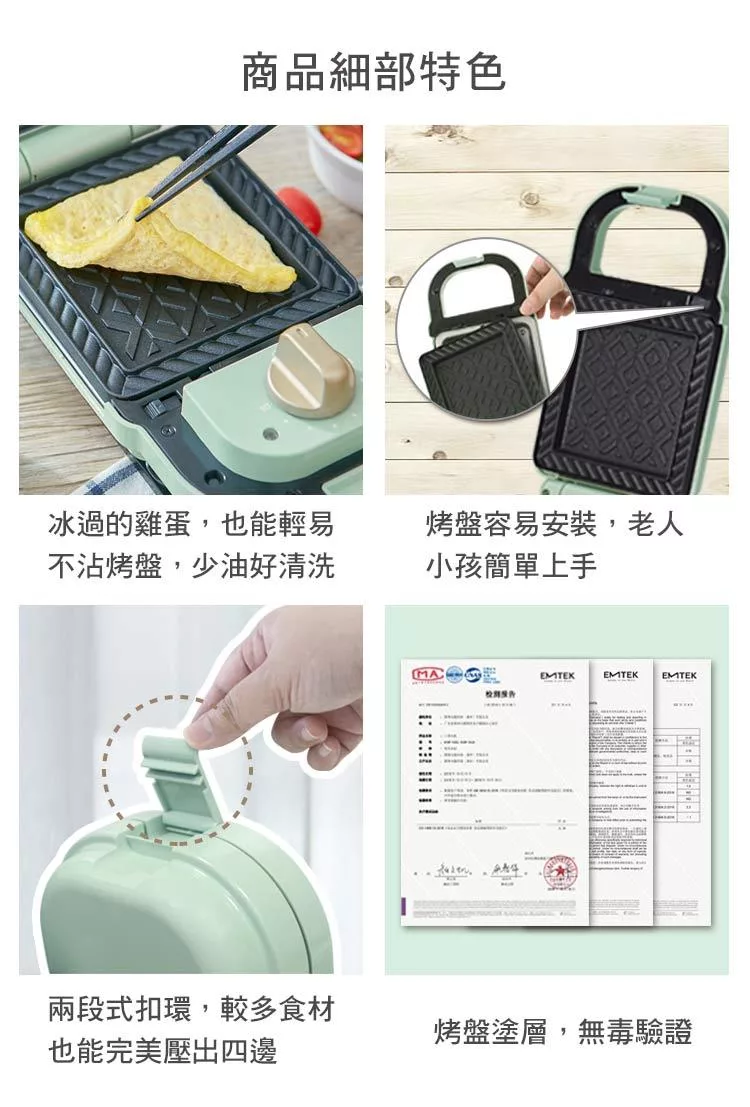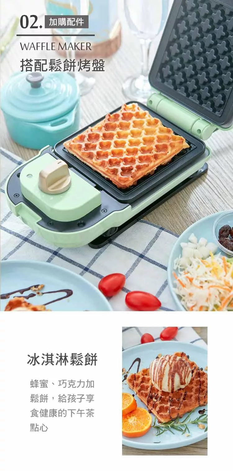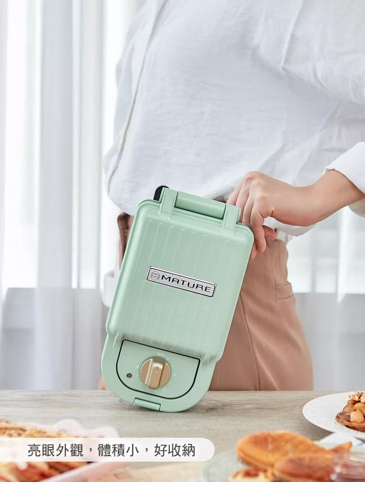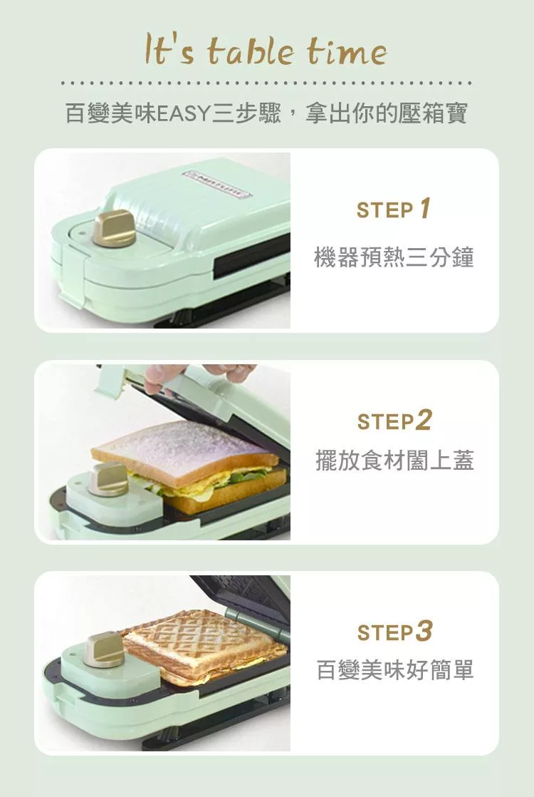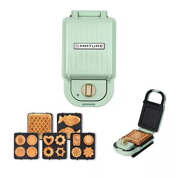 MATURE美萃 早餐組夾心陶瓷爐-深茉綠 含主機+三明治烤盤+鬆餅烤盤