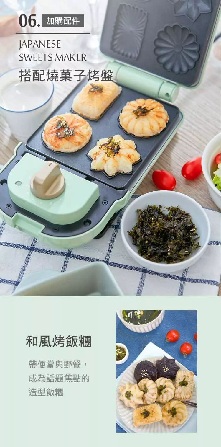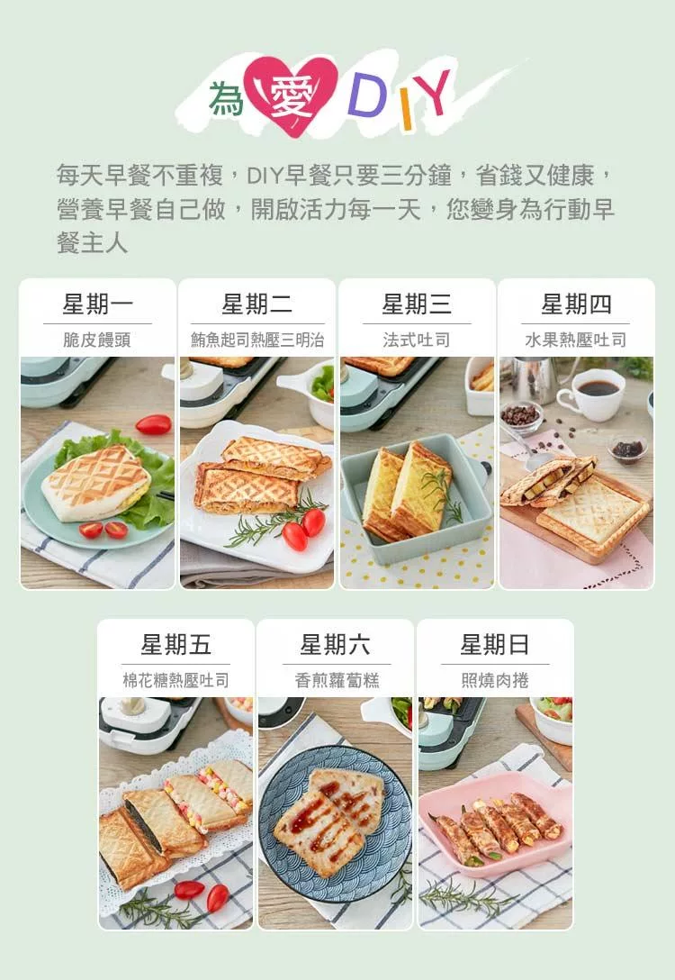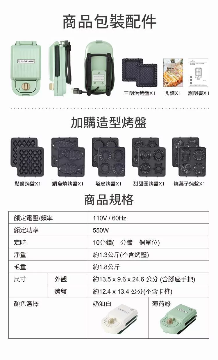 MATURE美萃 早餐組夾心陶瓷爐-深茉綠 含主機+三明治烤盤+鬆餅烤盤