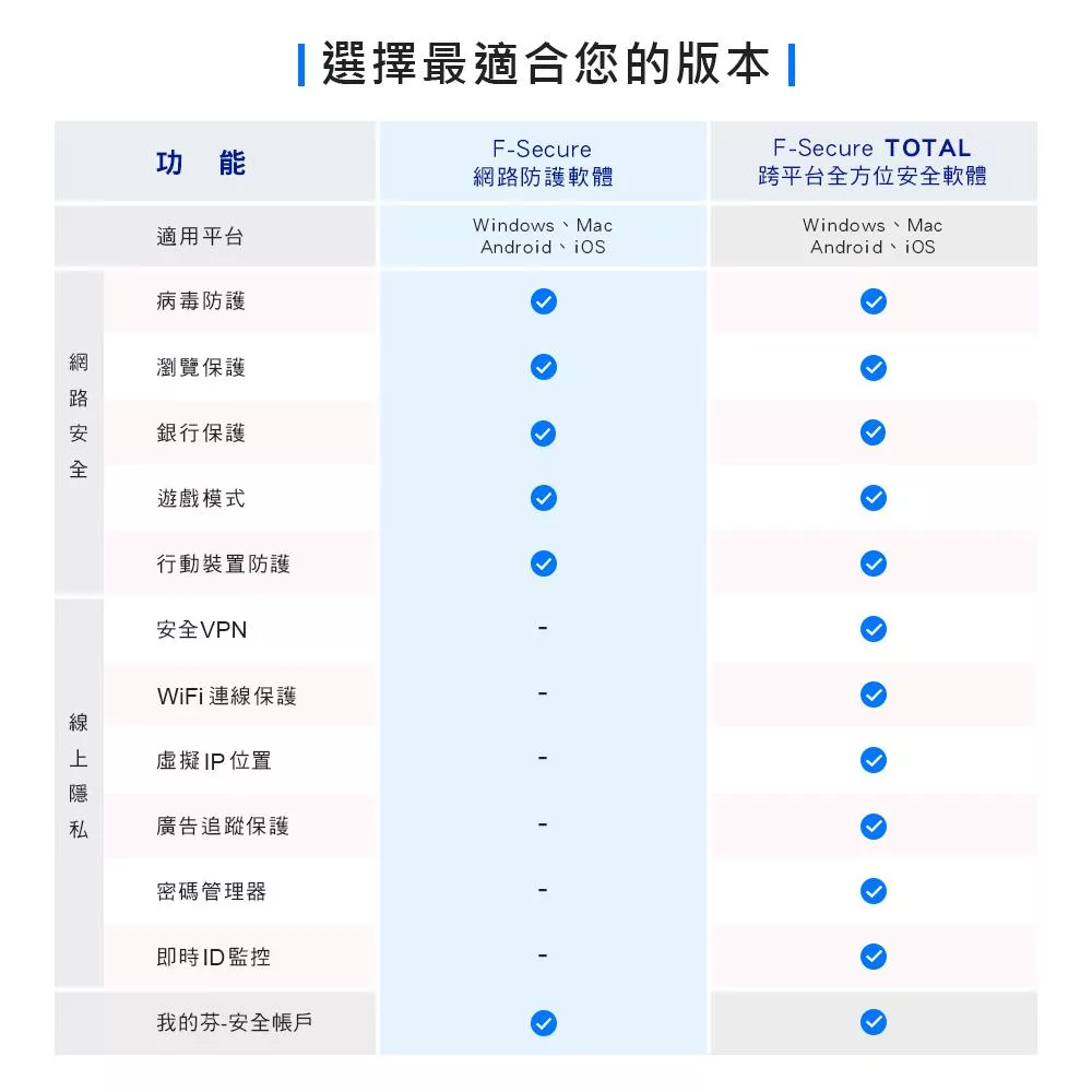 F-Secure TOTAL 跨平台全方位安全軟體1~3台裝置1年授權-盒裝版
