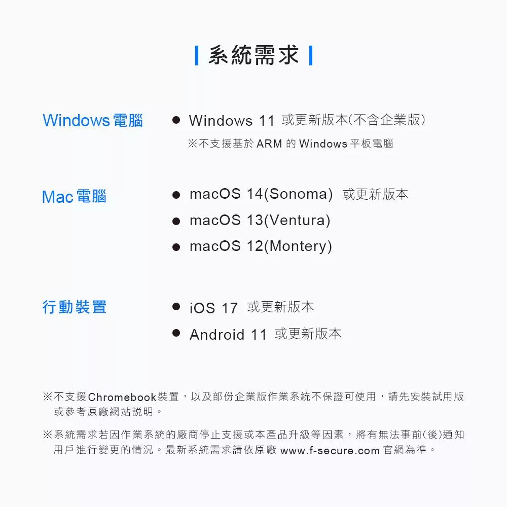 [下載版] F-Secure TOTAL 跨平台全方位安全軟體1~3台裝置1年授權