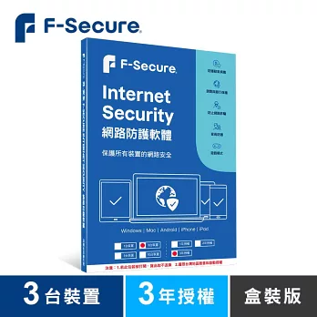 F-Secure 芬-安全 網路防護軟體-3台裝置3年授權-盒裝版