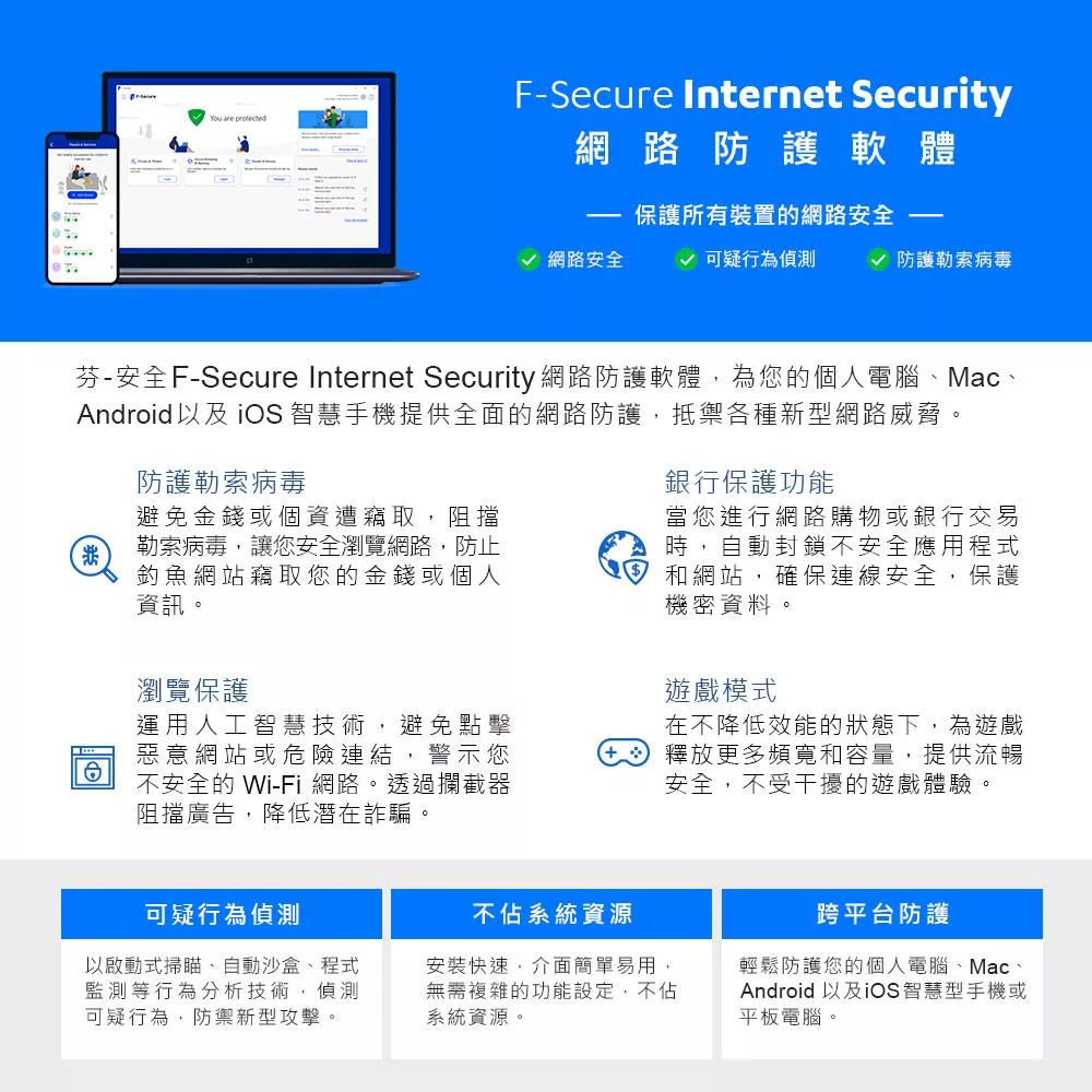 F-Secure 芬-安全 網路防護軟體-1台裝置2年授權-盒裝版