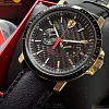 FERRARI法拉利精品錶,編號:FE00095,42mm圓形玫瑰金精鋼錶殼黑色錶盤真皮皮革深黑色錶帶