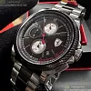 FERRARI法拉利精品錶,編號:FE00098,48mm圓形黑精鋼錶殼黑色錶盤精鋼銀黑相間錶帶