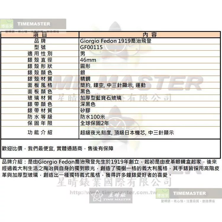 星晴錶業為您帶來Giorgio Fedon 1919喬治飛登男錶GF00115,