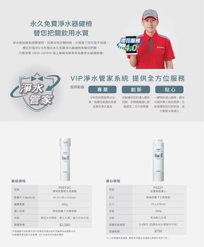★可搭配櫻花淨水設備產品為前置過濾用