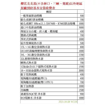 ★★★★免費基本安裝除台北市、新北市(不含林口、三峽、鶯歌)、基隆市由原廠技師免費基本安裝!其於地區原廠技師到府安裝會現場收取安裝費,不會退回安裝費,請參考北北基以外縣市收費表:★★★
