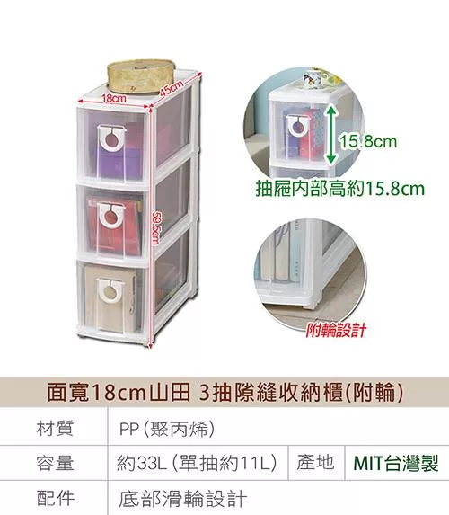《真心良品》KEYWAY面寬18cm山田 3抽隙縫收納櫃(附輪)-1入