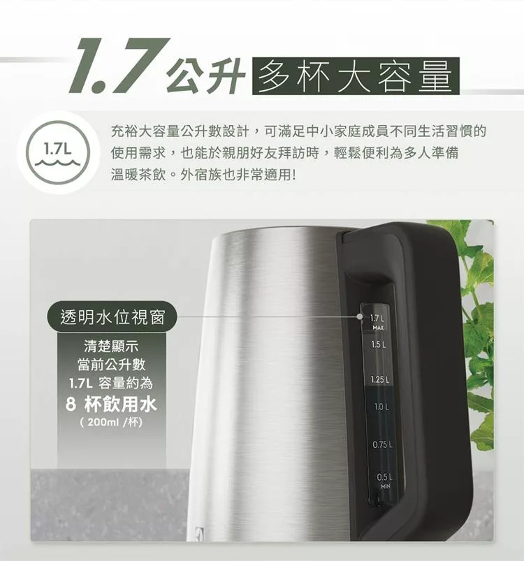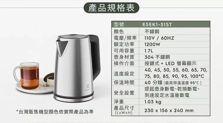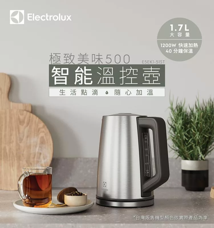 伊萊克斯 1.7L智能溫控電茶壺E5EK1-51ST