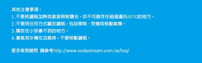 ◎ sodastream鋼瓶僅適用台灣購買之氣泡水機