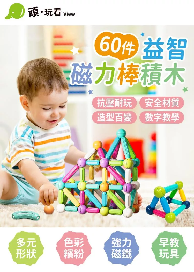 1. 多元形狀/色彩繽紛/強力磁鐵/早教玩具