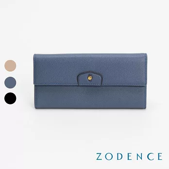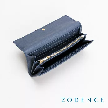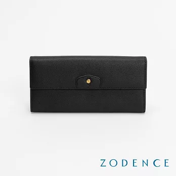 ZODENCE HAN義大利植鞣革時尚拉鍊長夾 深邃黑