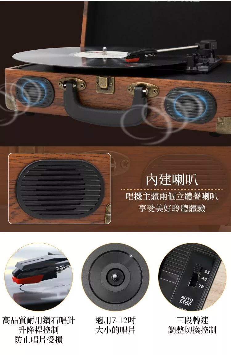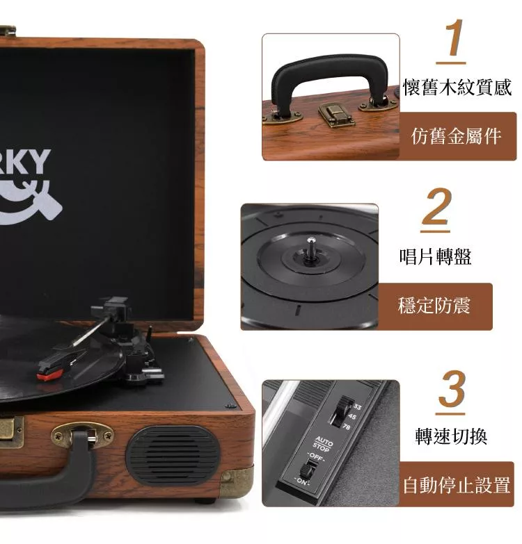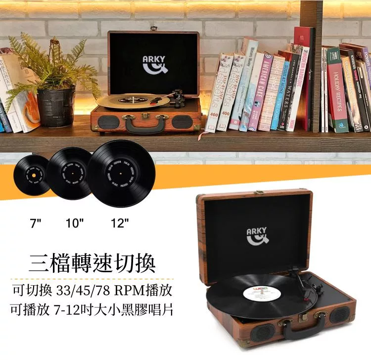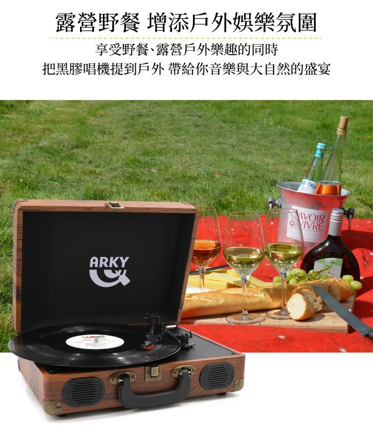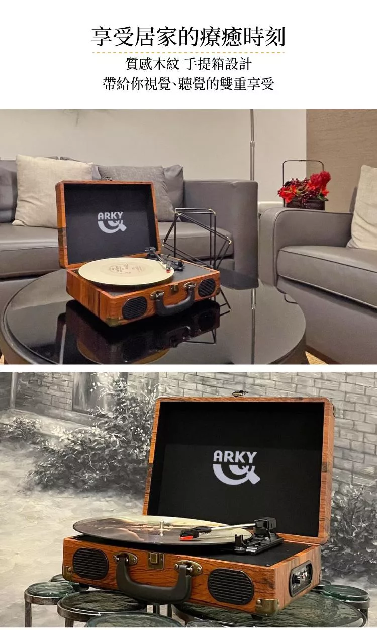 ARKY 經典木紋復古手提箱黑膠唱機 - 懷舊棕款