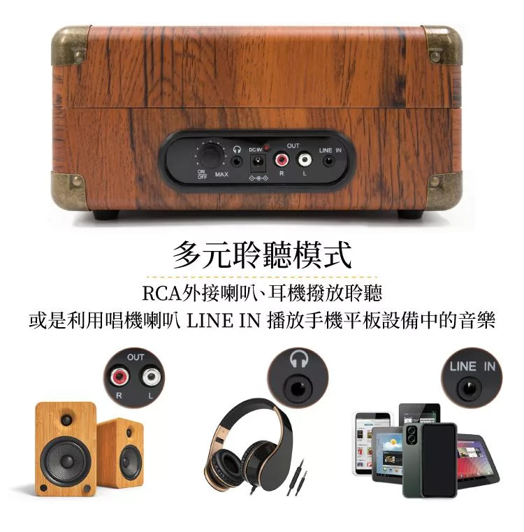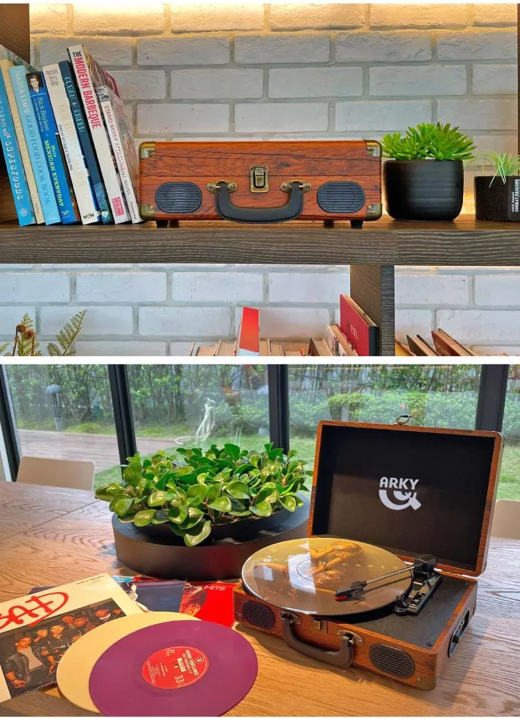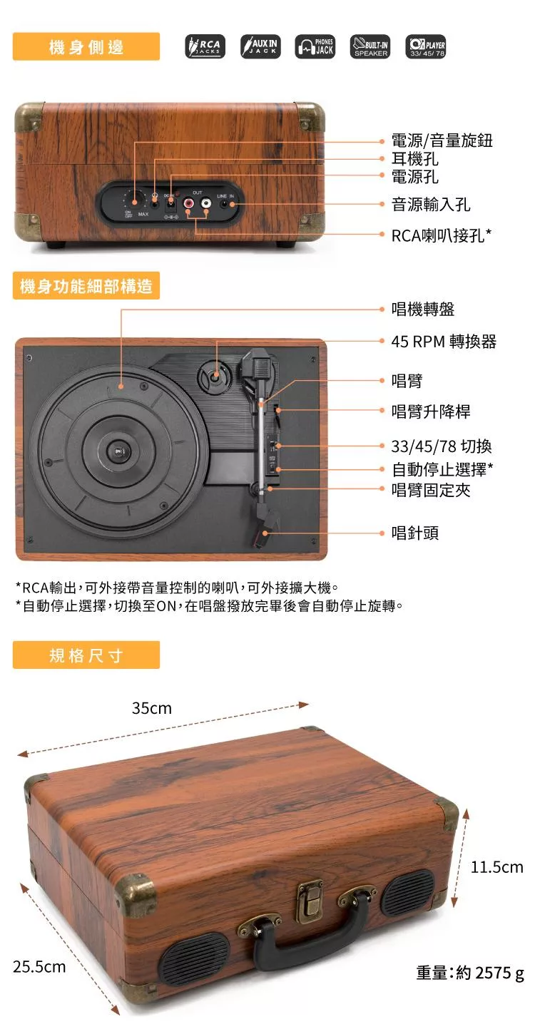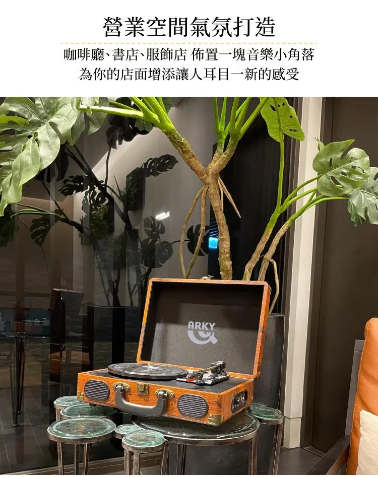 ARKY 經典木紋復古手提箱黑膠唱機 - 懷舊棕款