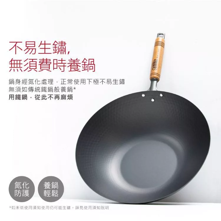 【JIA品家】家嚐 氮化處理 錘紋鐵鍋 炒鍋30cm
