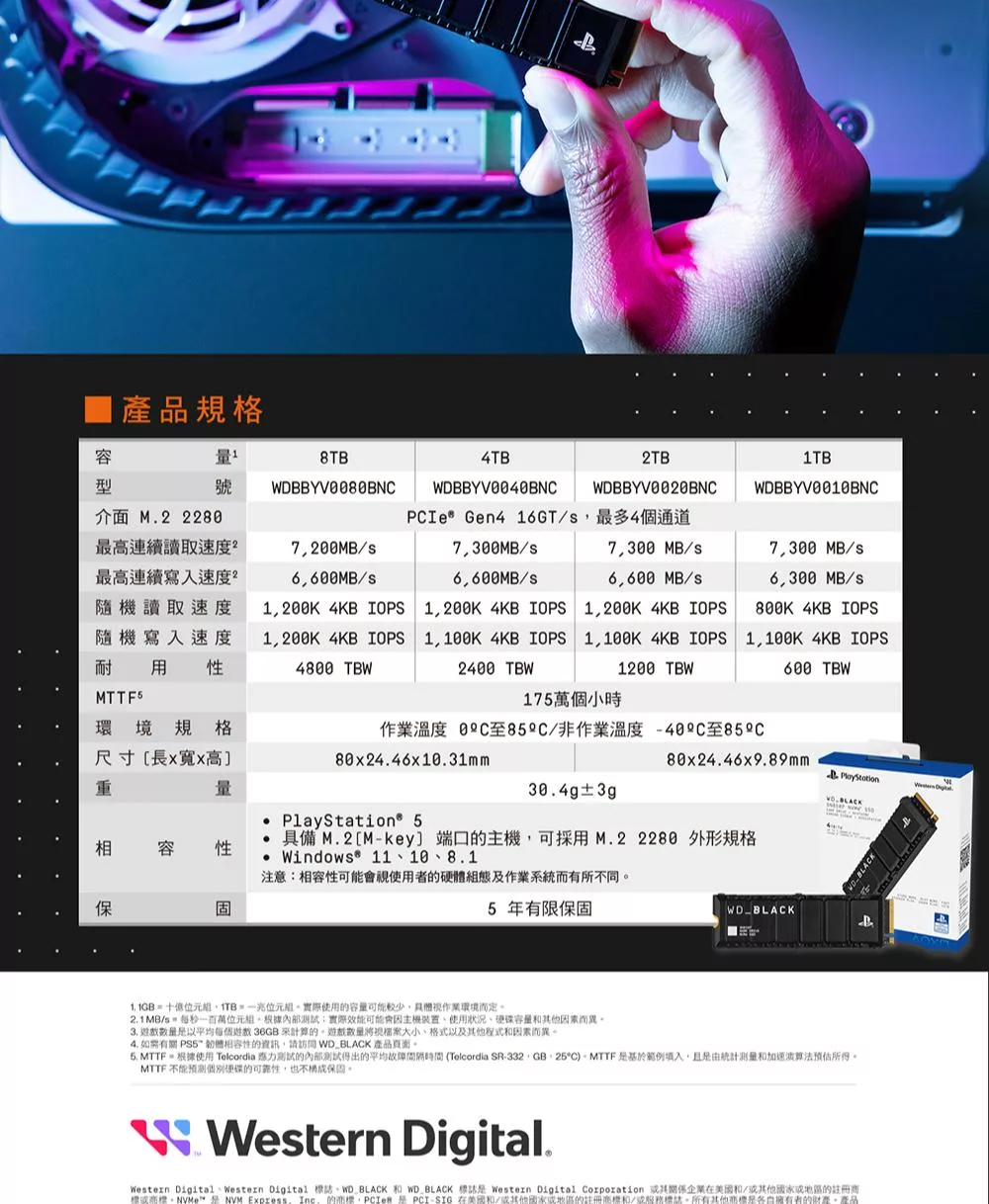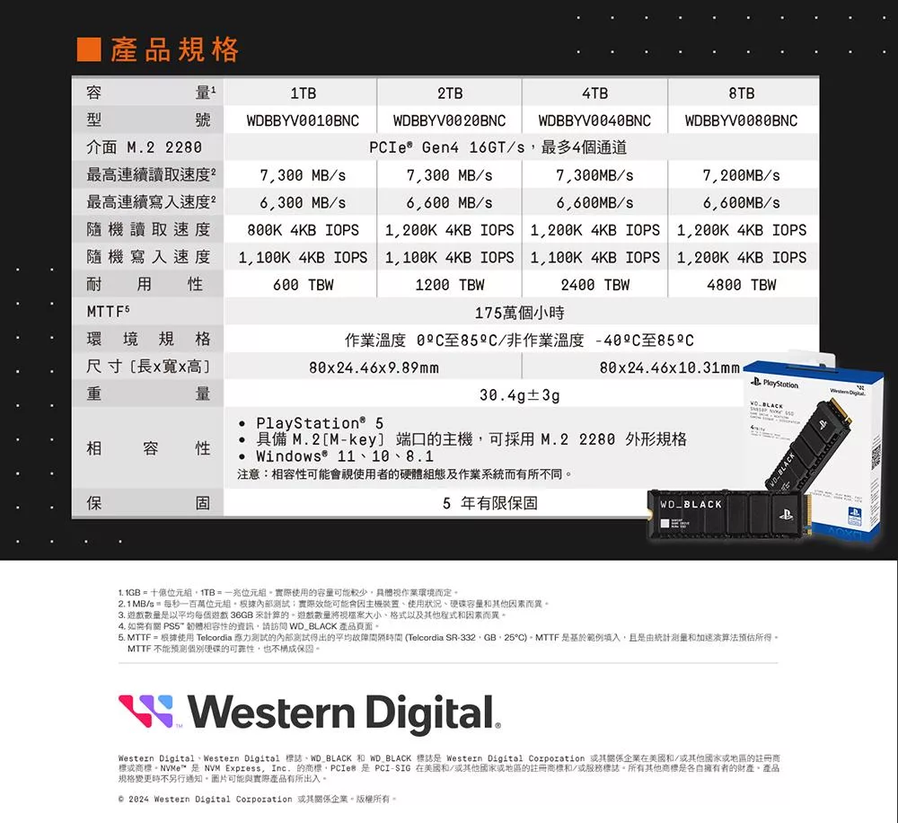WD BLACK 黑標 SN8100 4TB Gen5 NVMe PCIe SSD固態硬碟 公司貨