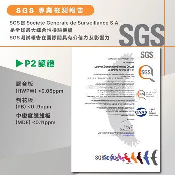 * 符合SGS國際甲醛低含量P2標準