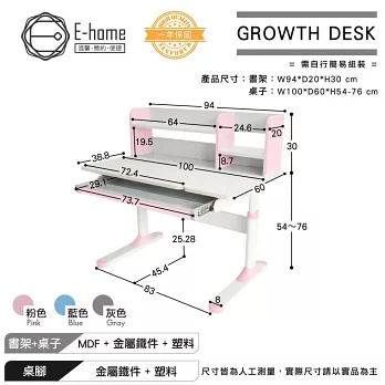 [E-home]ZUZU祖祖彩邊書架單抽多功能陪讀兒童升降成長桌-寬100cm,陪伴寶貝快樂成長的兒童成長桌,
