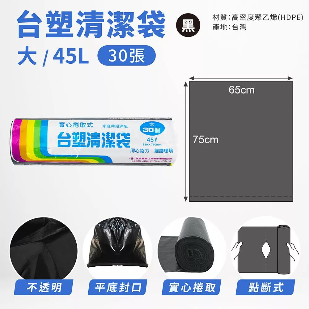 台塑 實心 清潔袋 垃圾袋 (大) (黑色) (45L) (65*75cm) (30捲)