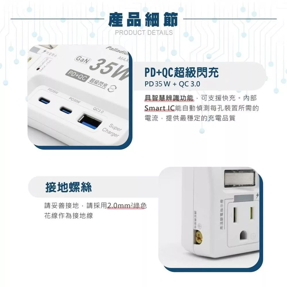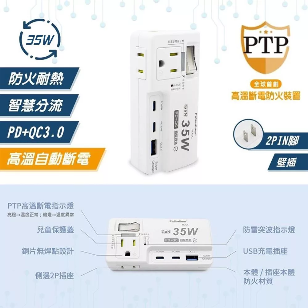 氮化鎵GaN 1開2插 PD35W高效能閃充 TYPE-C QC USB壁插 插座/擴充座/轉接插頭 110V專用