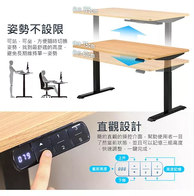 【居家cheaper】凱瑟電動升降桌 KC11/電動桌/自動桌/可條桌子/成長桌/工作桌/電腦桌/辦公桌 白橡木