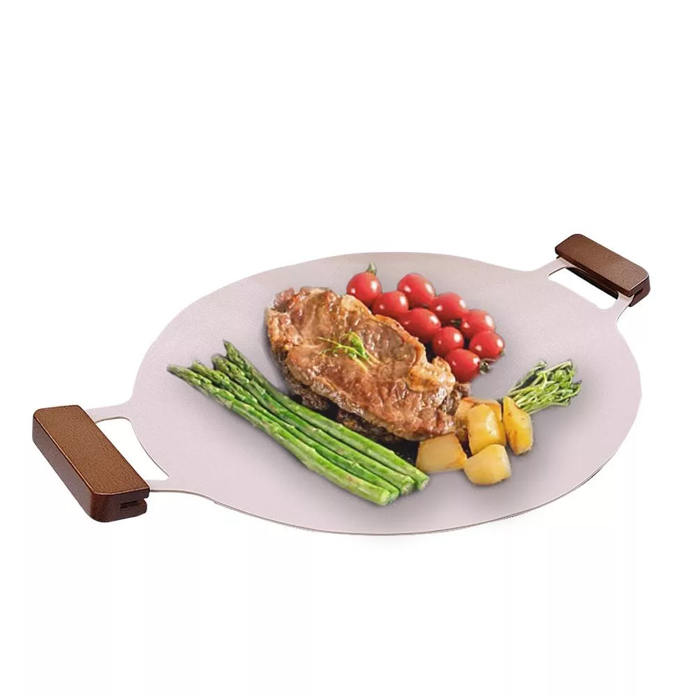 使用時,採用中小火即可,待烤盤表面溫度溫熱後,即可開始使用