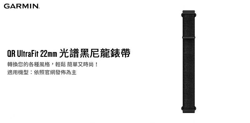 GARMIN QR UltraFit 22mm 光譜黑尼龍錶帶