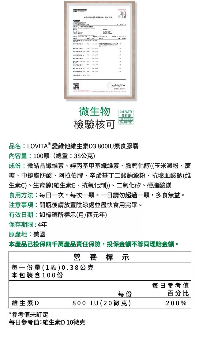 Lovita 愛維他 維他命D3膠囊800IU (維生素D3,非活性)