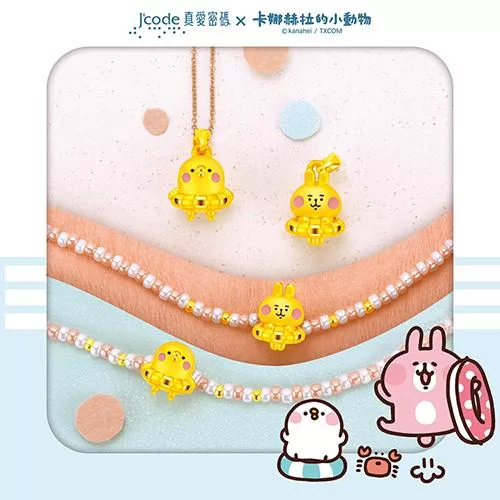 J’code真愛密碼金飾 卡娜赫拉的小動物-甜心粉紅兔兔+甜心P助硬金擺件