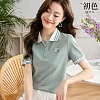 【初色】襯衫領童趣兔子刺繡撞色拼接條紋袖口運動風短袖POLO衫上衣-灰綠色-68322(M-2XL可選) M 灰綠色