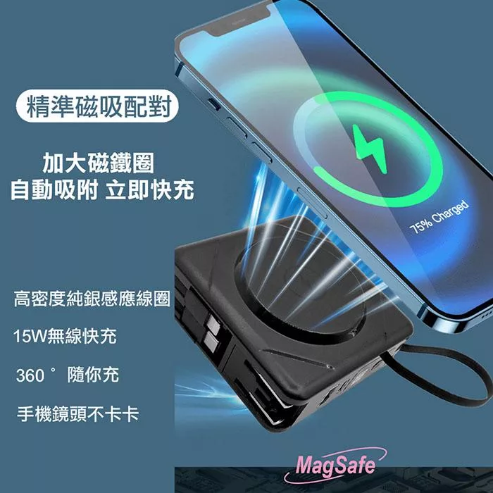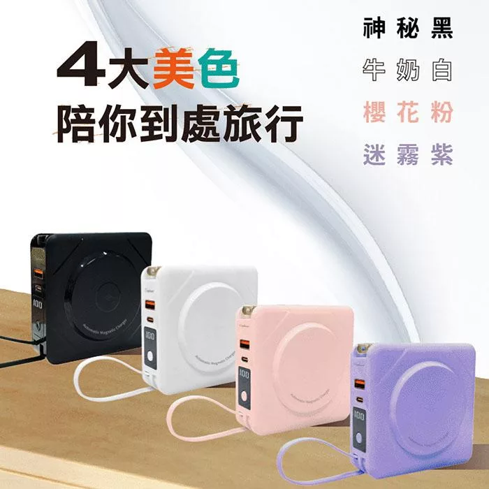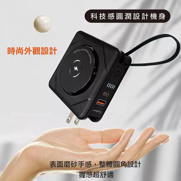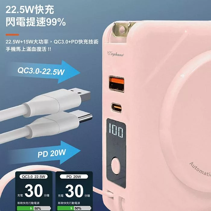 【Wephone】數顯自帶線行動電源+充電頭+15W磁吸無線充電(QC/PD快充)