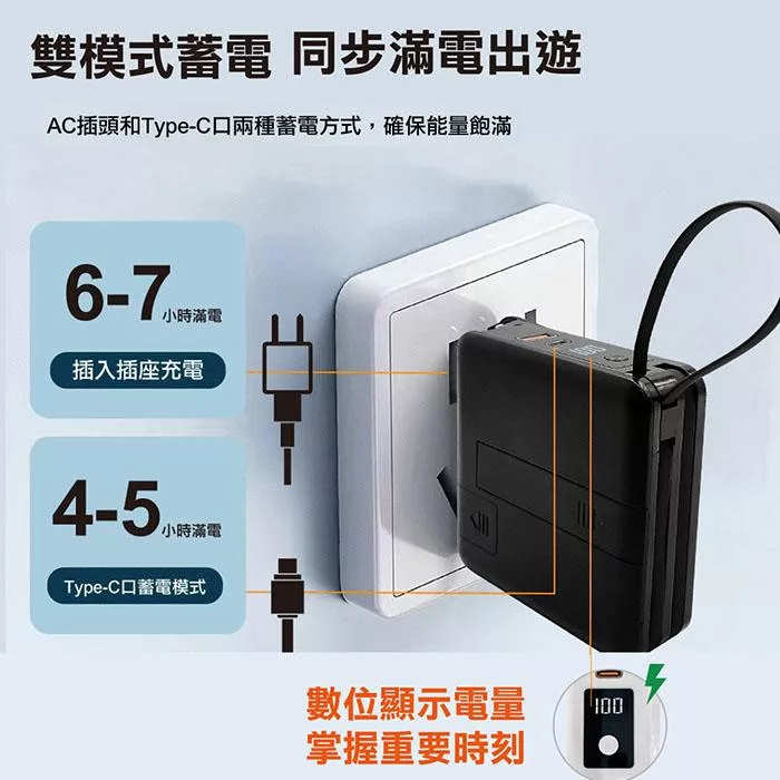 二規格自帶隱藏式線-Lightning、type-c,數字顯示最清晰!