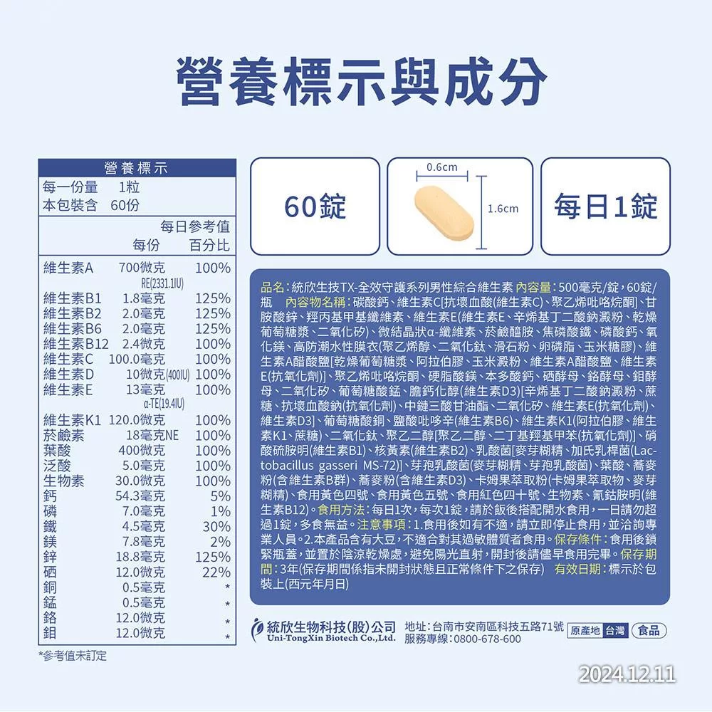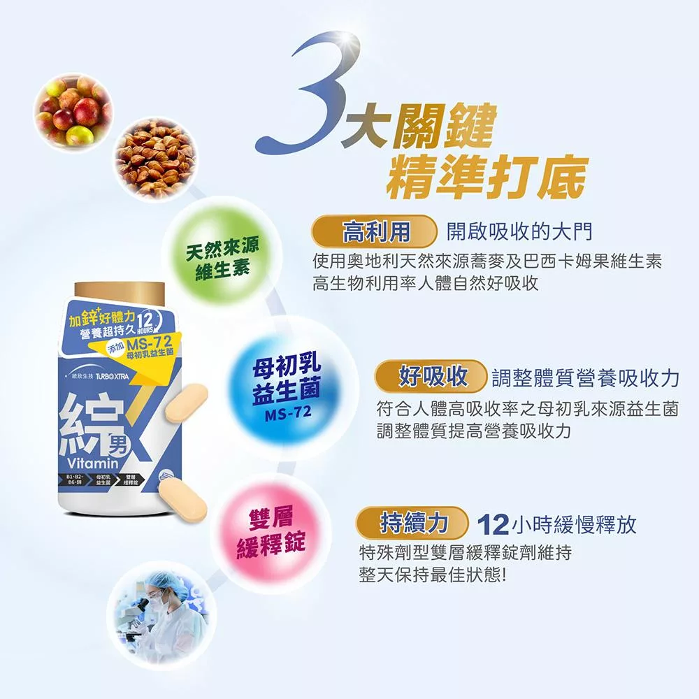 【銀寶善存】綜合維他命錠120錠 男性(B1/鎂+鈣+葉黃素+鋅)