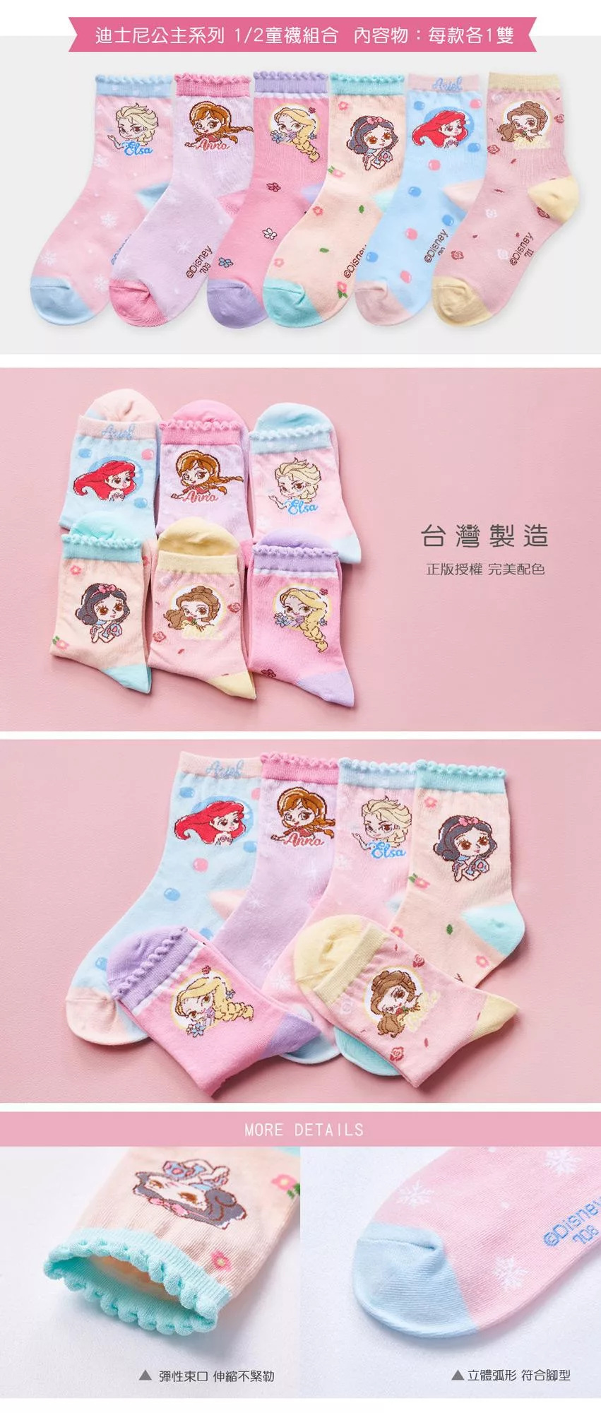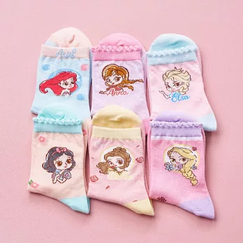【ONEDER 旺達棉品】Disney 公主直版襪 白雪公主 小美人魚 灰姑娘 貝兒 長髮公主 冰雪奇緣直版襪 FZ-A523(15-22)