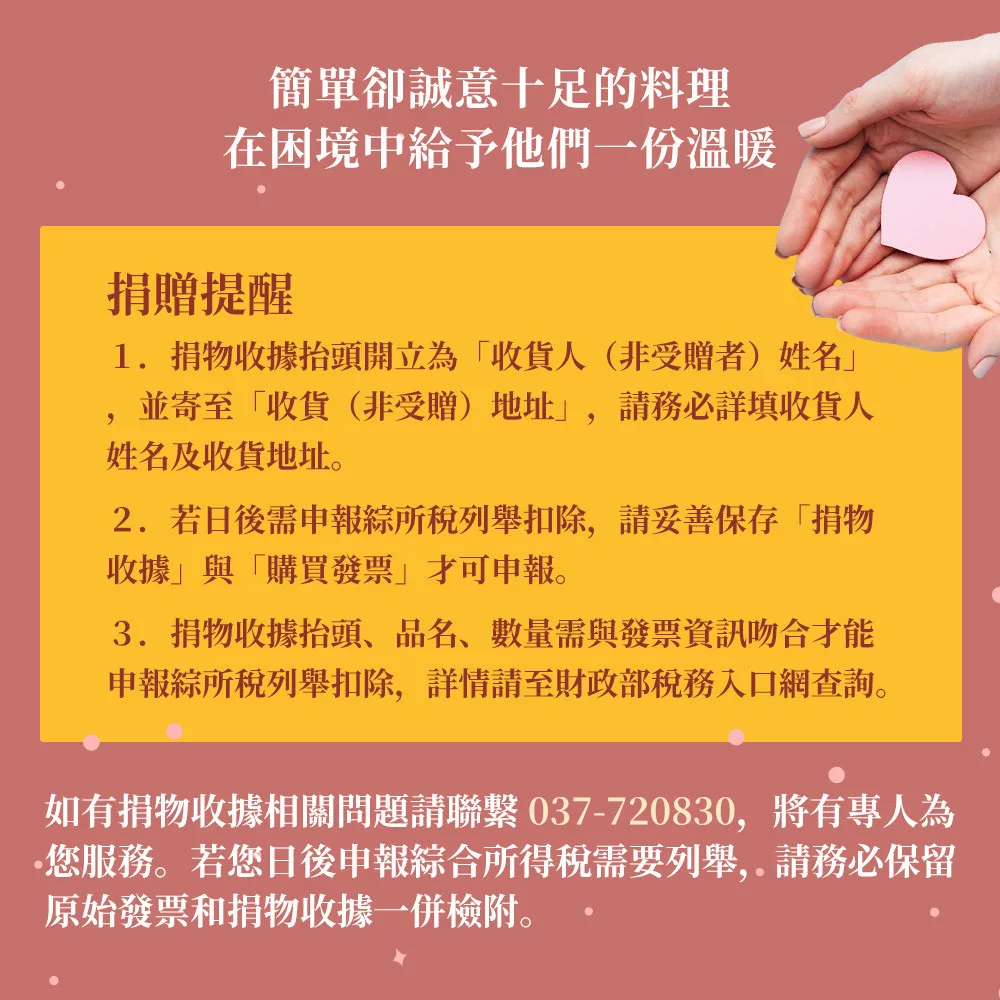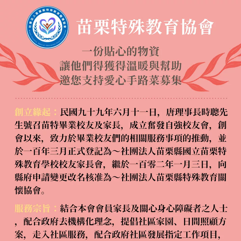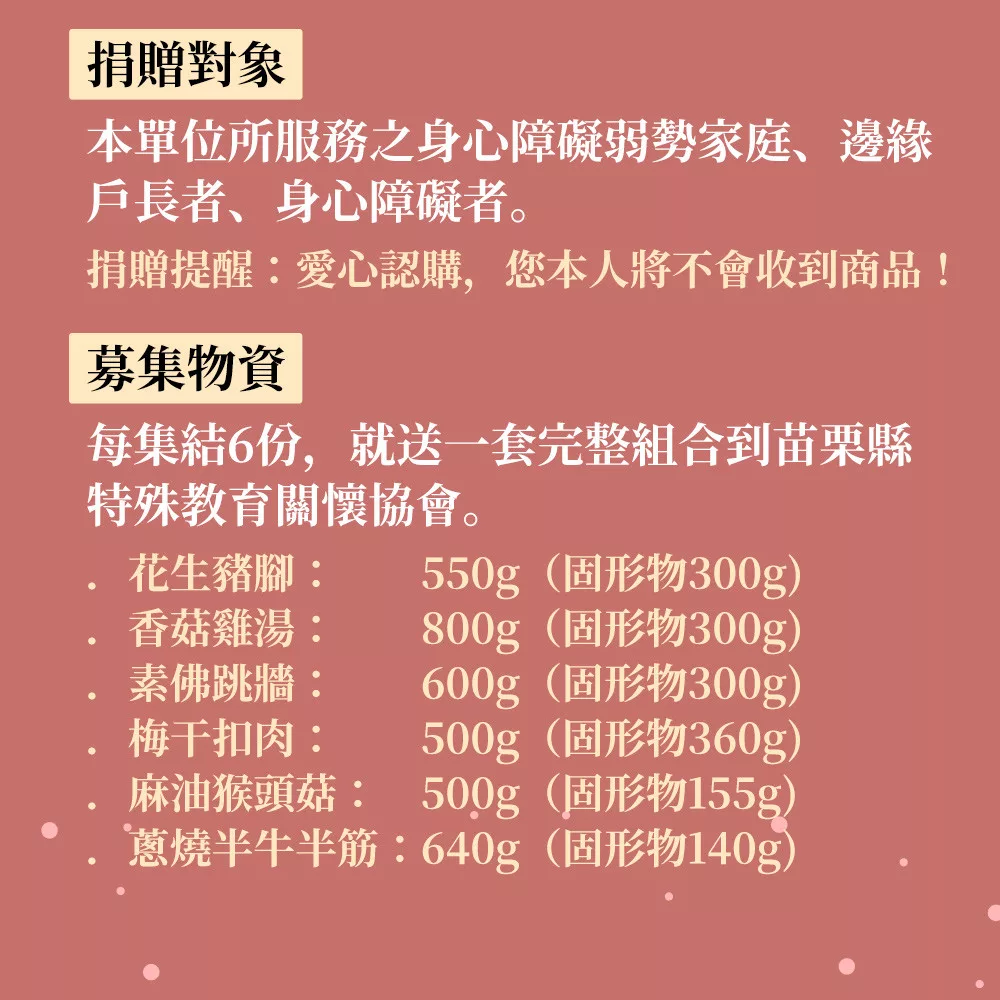 【苗栗特殊教育協會x娘家廚房】公益愛心手路菜募集(購買者不會收到商品)
