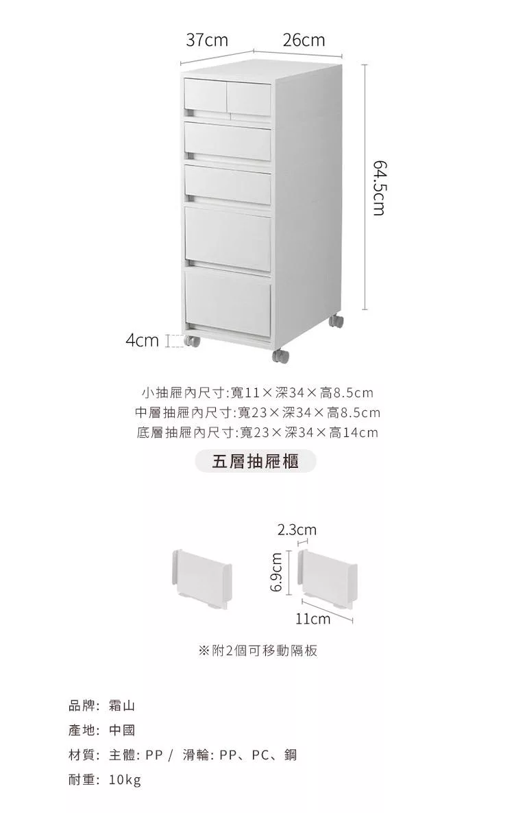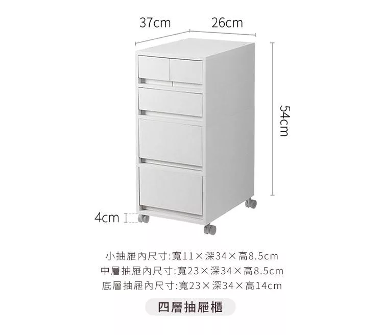 【日本霜山】無印風移動式四層抽屜置物收納櫃(附分類隔板)