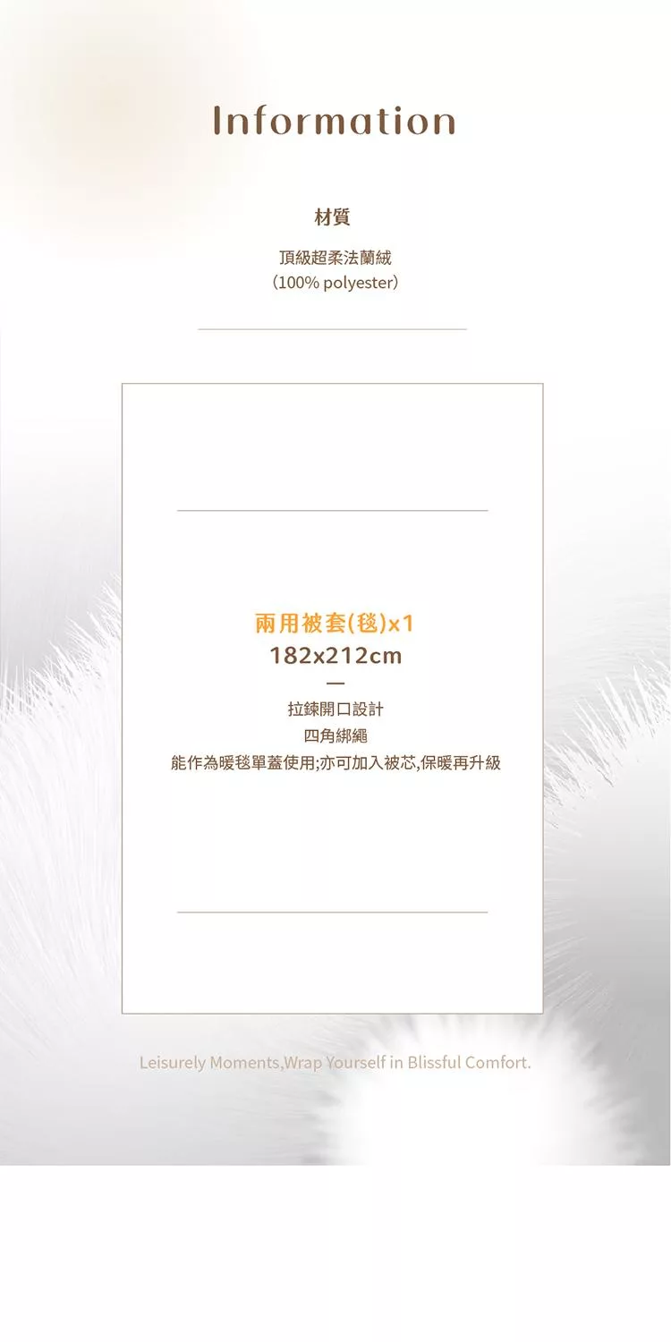 ◆尺寸:法蘭絨兩用被套-6×7尺(約182×212公分)