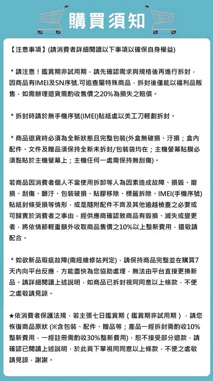 當您於此頁面下單表示您了解並同意下述規範,請注意!