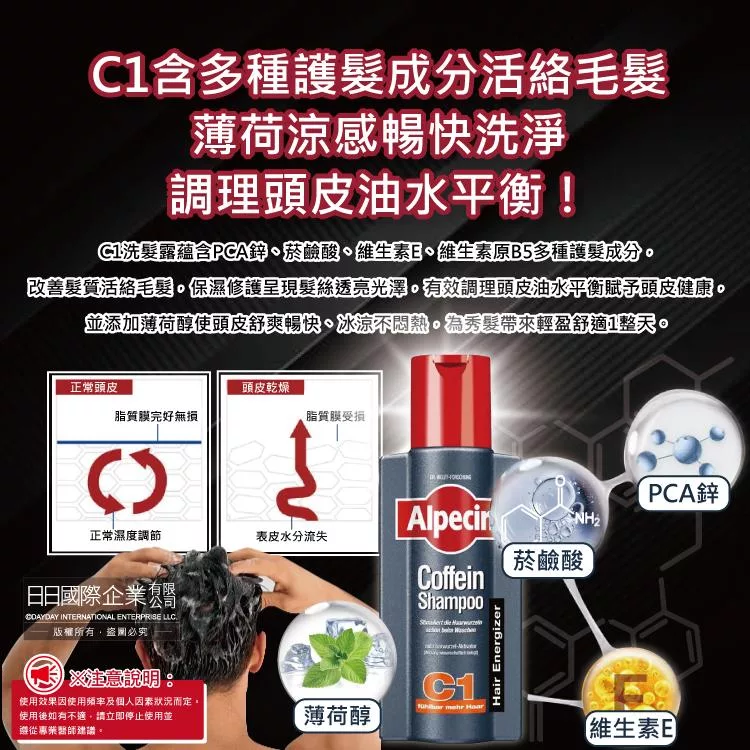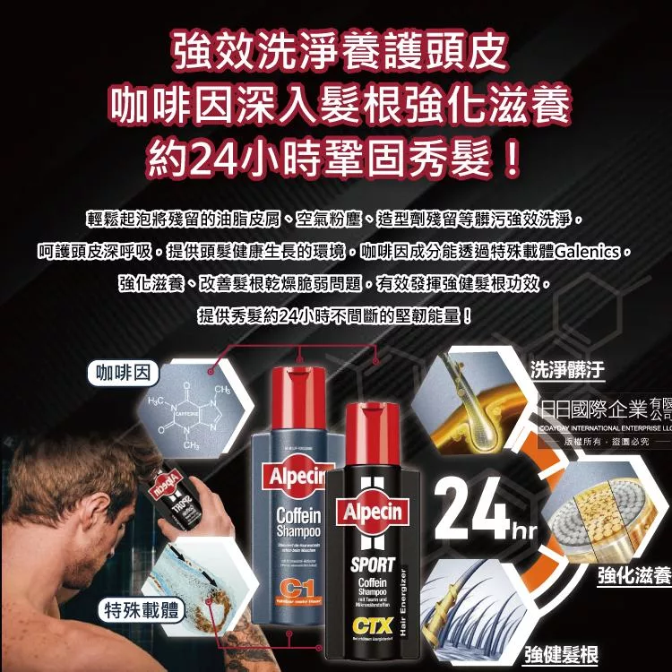 ●洗淨頭皮養護控油,咖啡因深入髮根補充能量,約24小時鞏固秀髮!