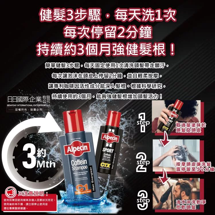 ●健髮3步驟,每天洗1次,每次停留2分鐘,持續約3個月強健髮根!
