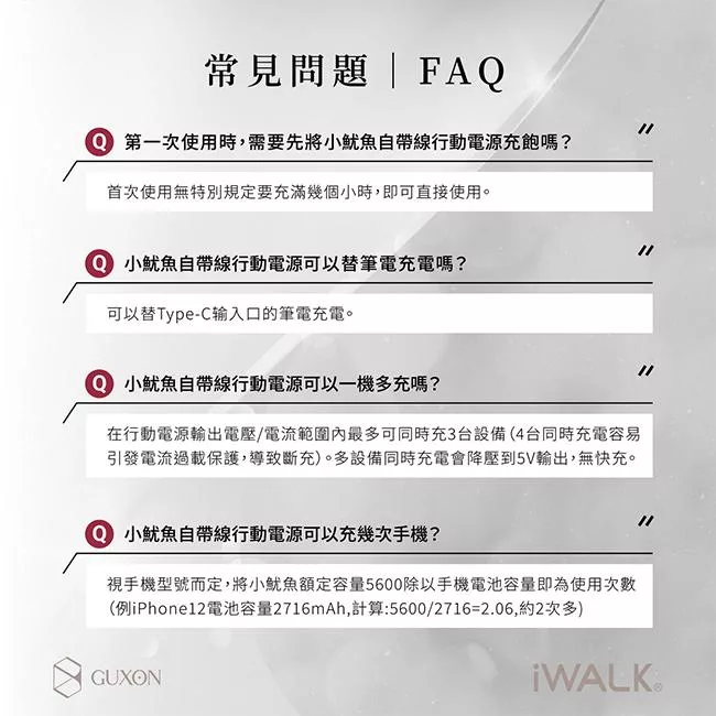 注意事項:小魷魚最多可同時充3台設備,請勿充4台,以免造成電池過載受損