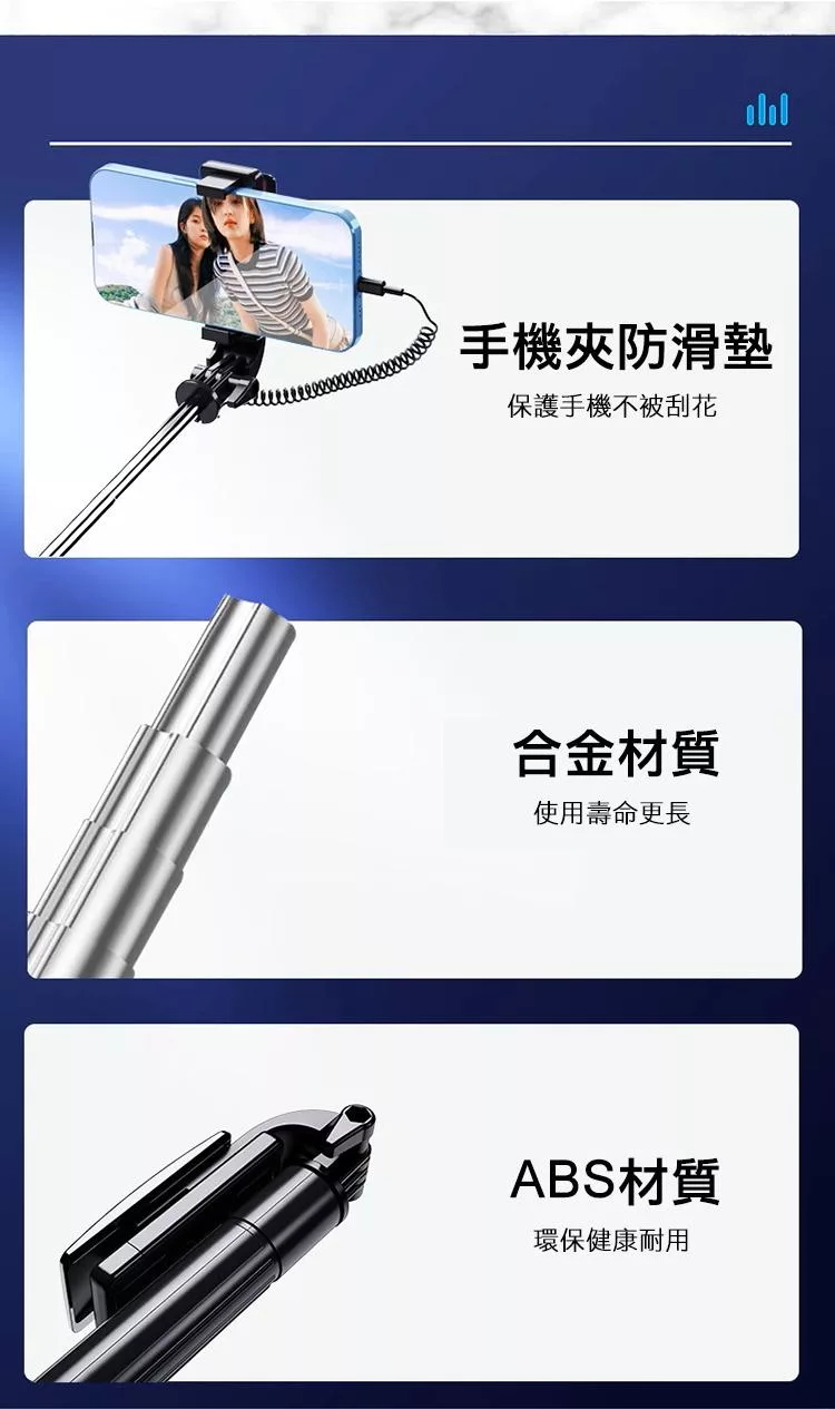 美極品【 3.0 三腳架自拍棒-磁吸版 】自拍神器 N52強力磁吸 藍牙遙控 旅行必備 贈磁吸環 一吸即拍 自拍棒 靜謐霧藍
