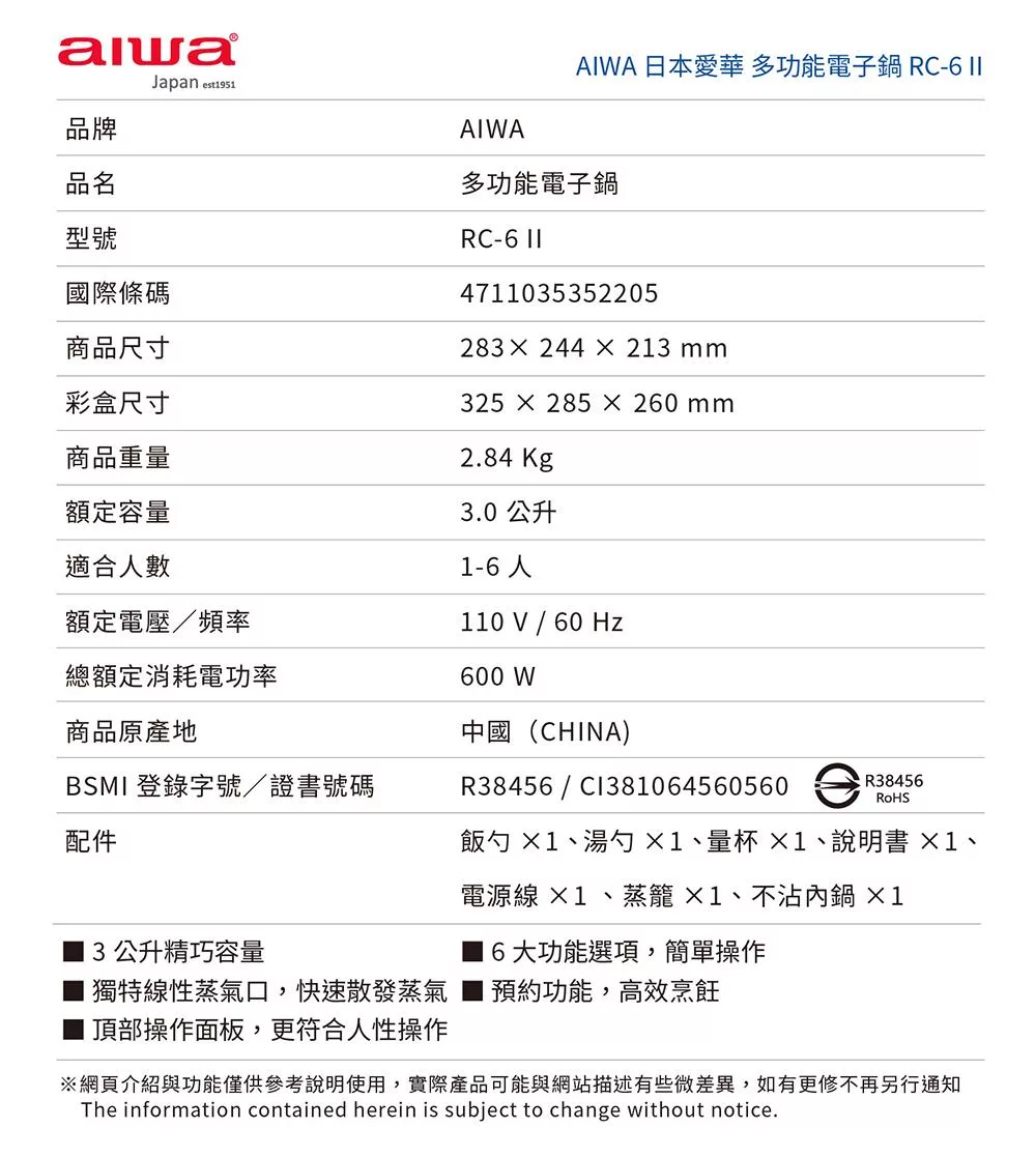 晶工 6人份厚釜電子鍋 JK-1661