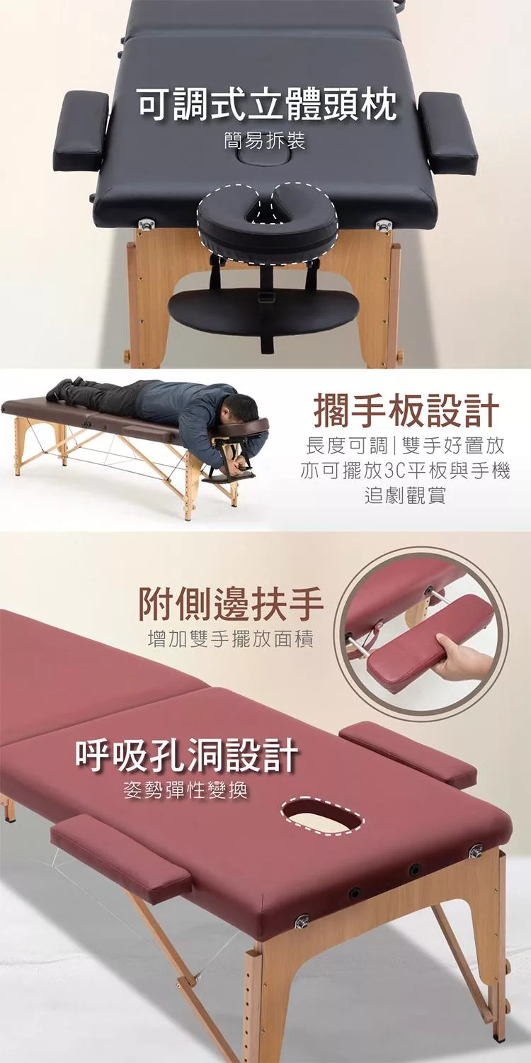 [E-home]Chill契爾實木腳附牛津布背袋折疊按摩推拿刺青床-寬60cm,熱銷歐美史上最便利行動按摩床,